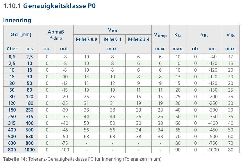 V dp Schwankung des Bohrungsdurchmessers in einer Radialebene