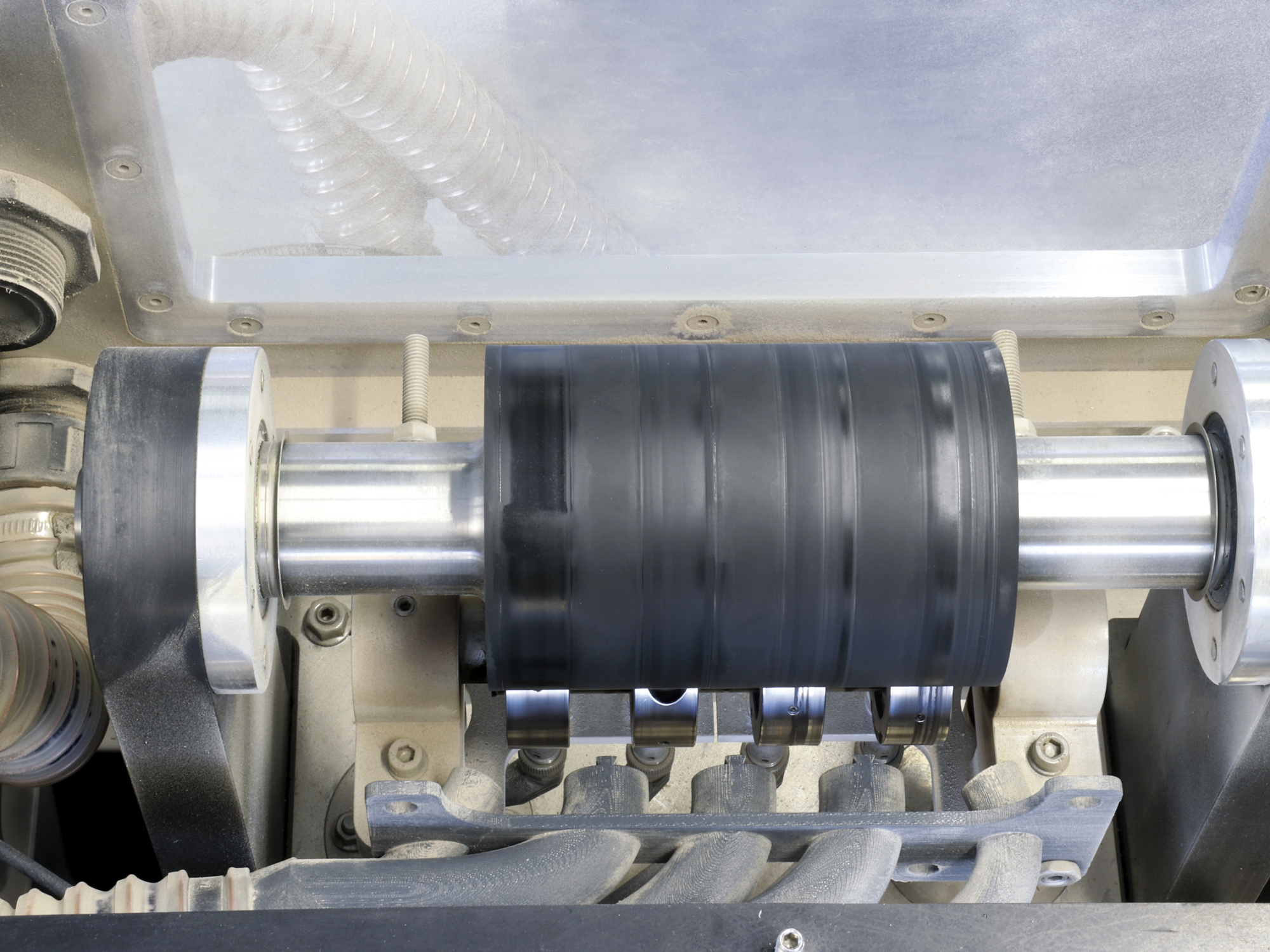 Die Motordrehzahl ist zwischen 2.000 rpm und 10.000 rpm frei wählbar und deckt so ein weites Spektrum ab. Im Fokus stehen aktuell Lagertypen wie z.B. Rillenkugellager 608 oder 6002, aber auch 6205, die im Vierersatz verbaut werden. Eine Besonderheit dieses Prüfstandes besteht in der Kraftaufbringung der Radiallast.